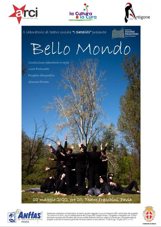Domenica 22 maggio, alle ore 20:00, presso il Teatro Fraschini di Pavia (Strada Nuova 136), si terrà lo spettacolo teatrale “Bello Mondo“, nato da una collaborazione tra il Circolo Arci Angelo Grassi, Antigone APS e Anffas Onlus, e la compagnia di teatro sociale “I Satelliti”.