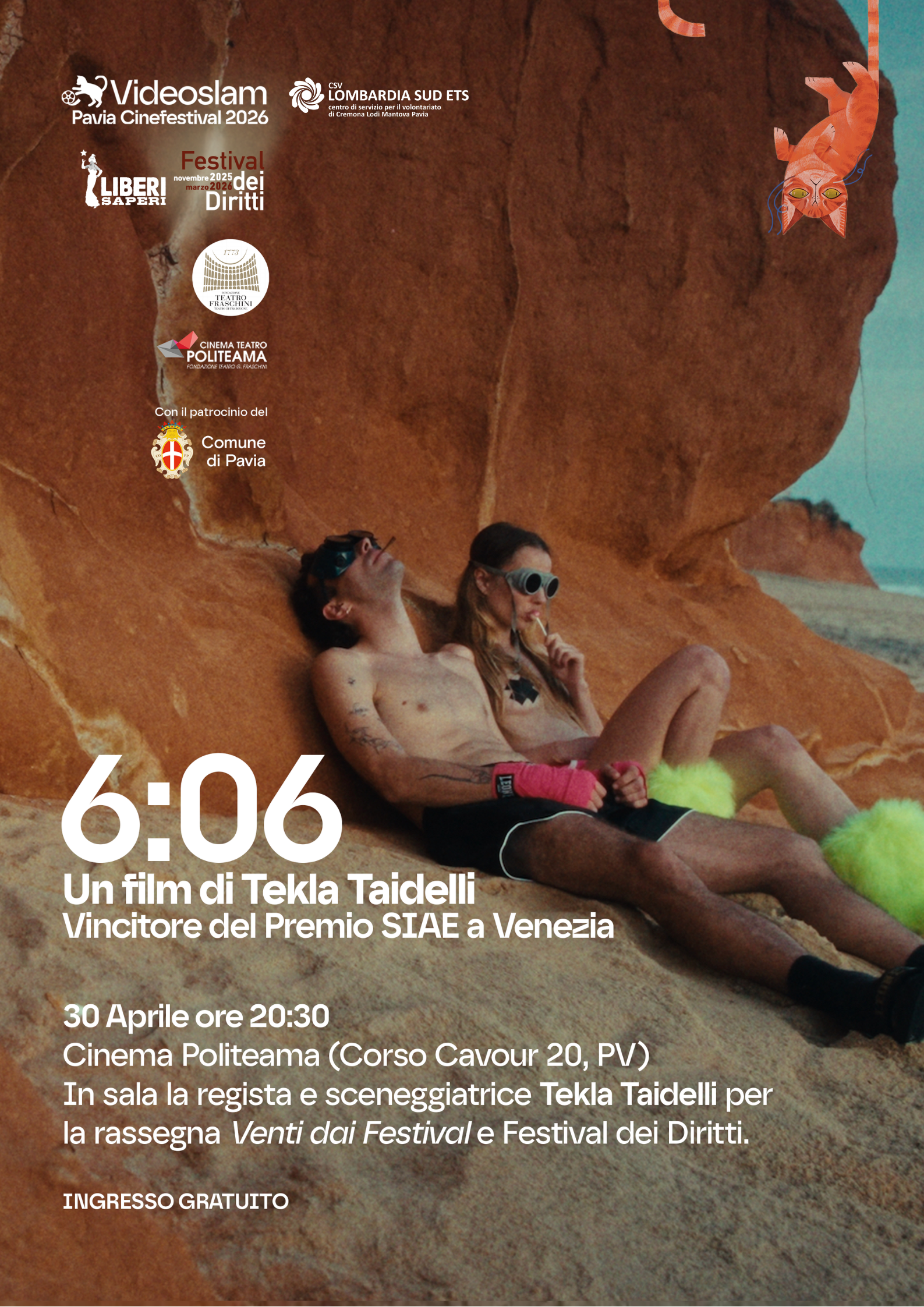 Rassegna organizzata da Liberi Saperi APS, CSV Lombardia Sud ETS, Fondazione Teatro Fraschini, Comune di Pavia nell’ambito di VideoSlam Pavia CineFestival 2026 e Festival dei Diritti.