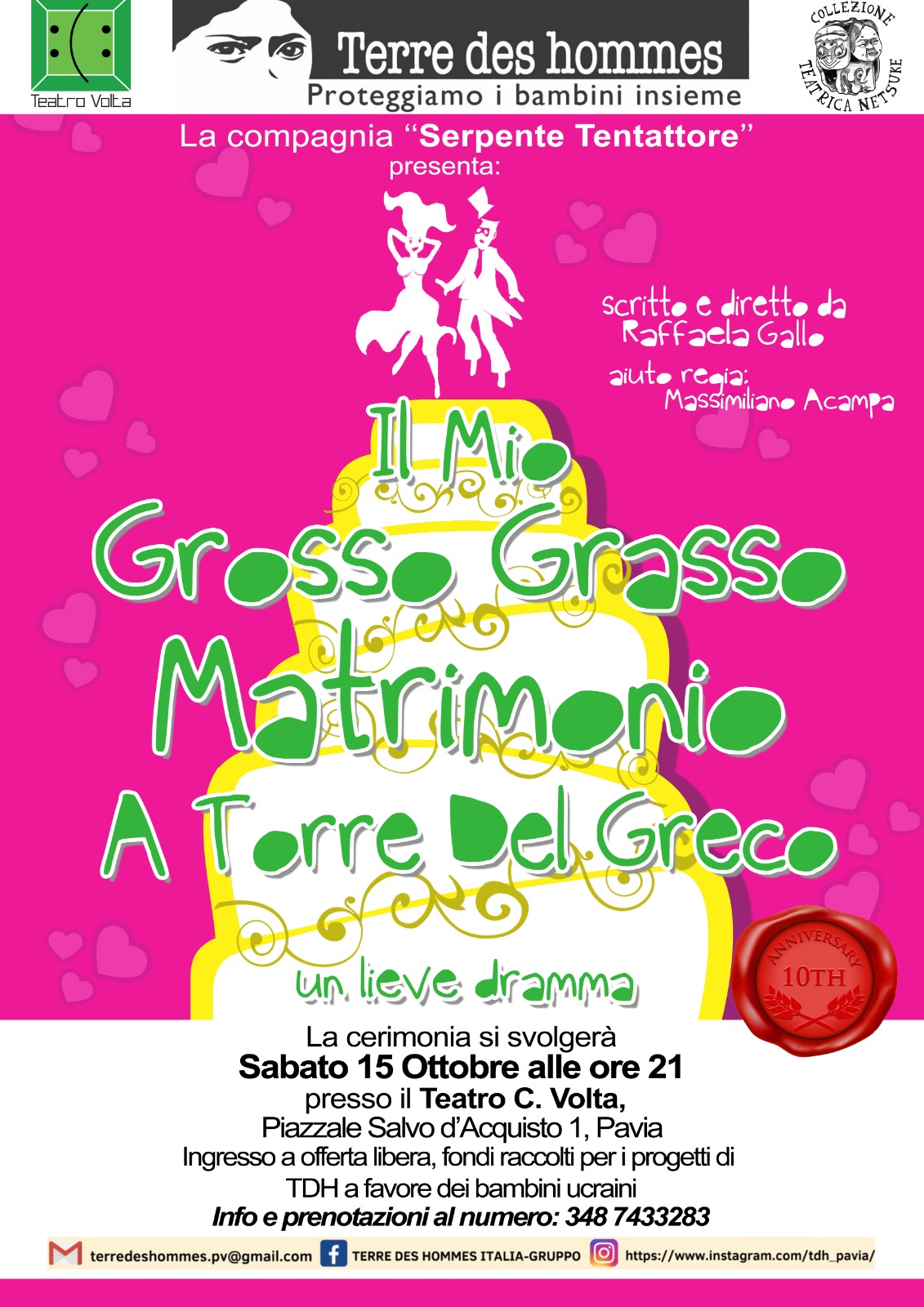 Sabato 15 ottobre alle ore 21 presso il Teatro Volta in piazza Salvo D’Acquisto 1 a Pavia, Terre des hommes gruppo di Pavia organizza una serata per festeggiare due anniversari: 10 anni dello spettacolo e 20 anni di attività del gruppo di Terre des Hommes a Pavia e con uno scopo benefico, raccogliere fondi per i bambini ucraini.