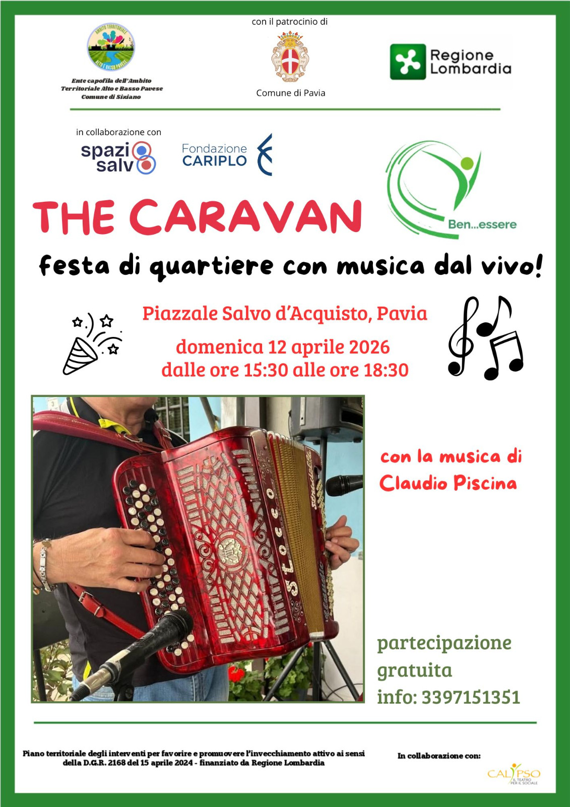 Domenica 12 aprile dalle 15,30 alle 18,30 al centro civico di Piazzale Salvo d’Acquisto a Pavia la comunità fa festa con The Caravan.