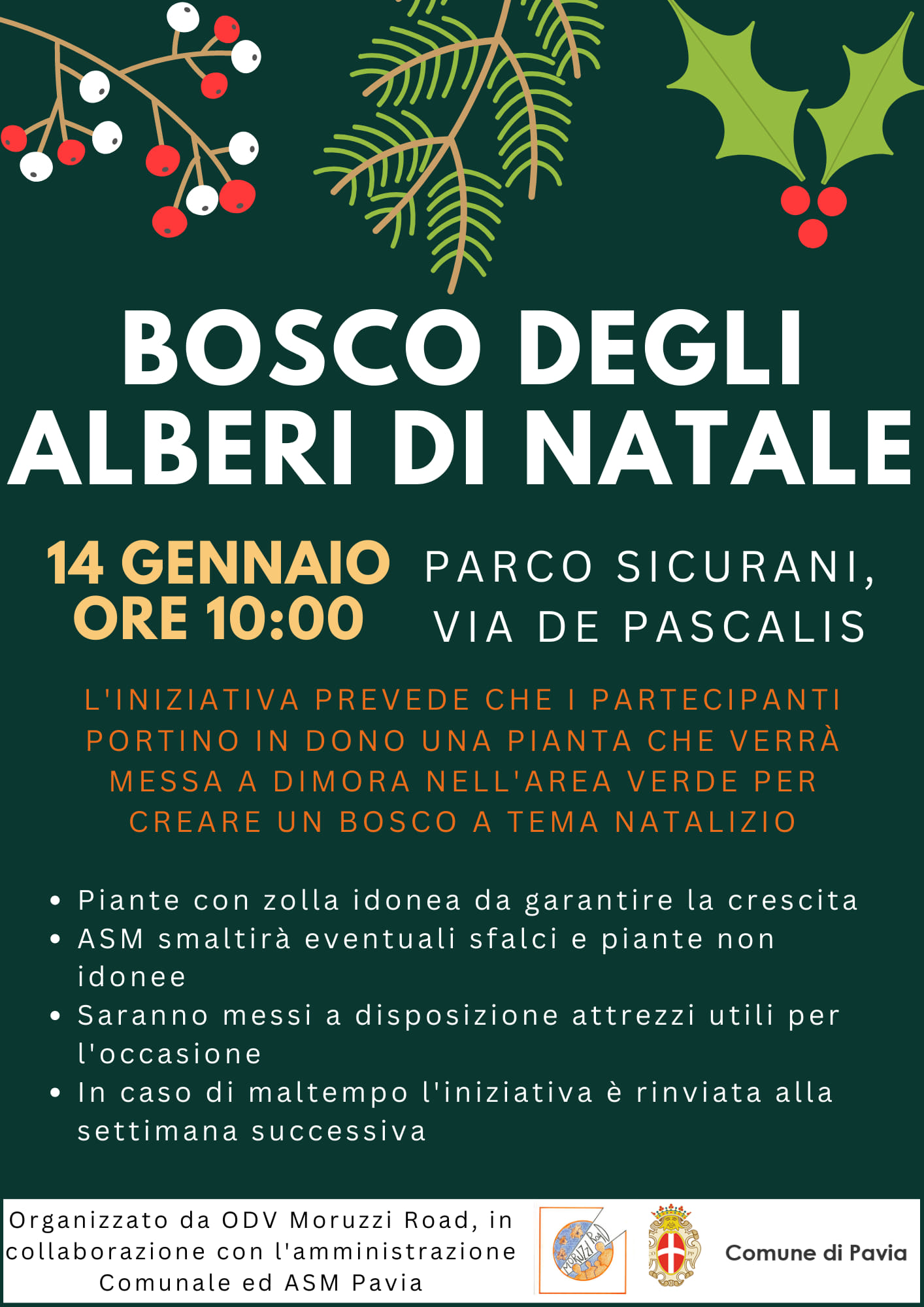 Il 14 gennaio l’associazione Moruzzi Road organizza un evento di raccolta piante per creare un bosco a tema natalizio.