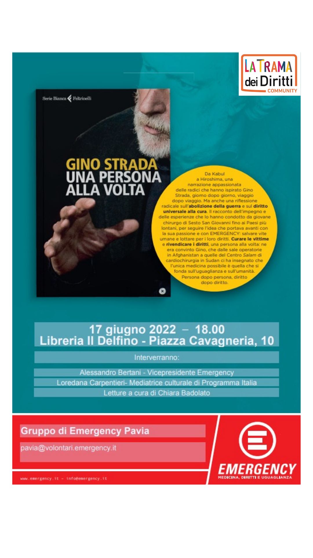 Sarà presentato a Pavia il 17 giugno l’ultimo libro di Gino Strada dal titolo “Una persona alla volta”.