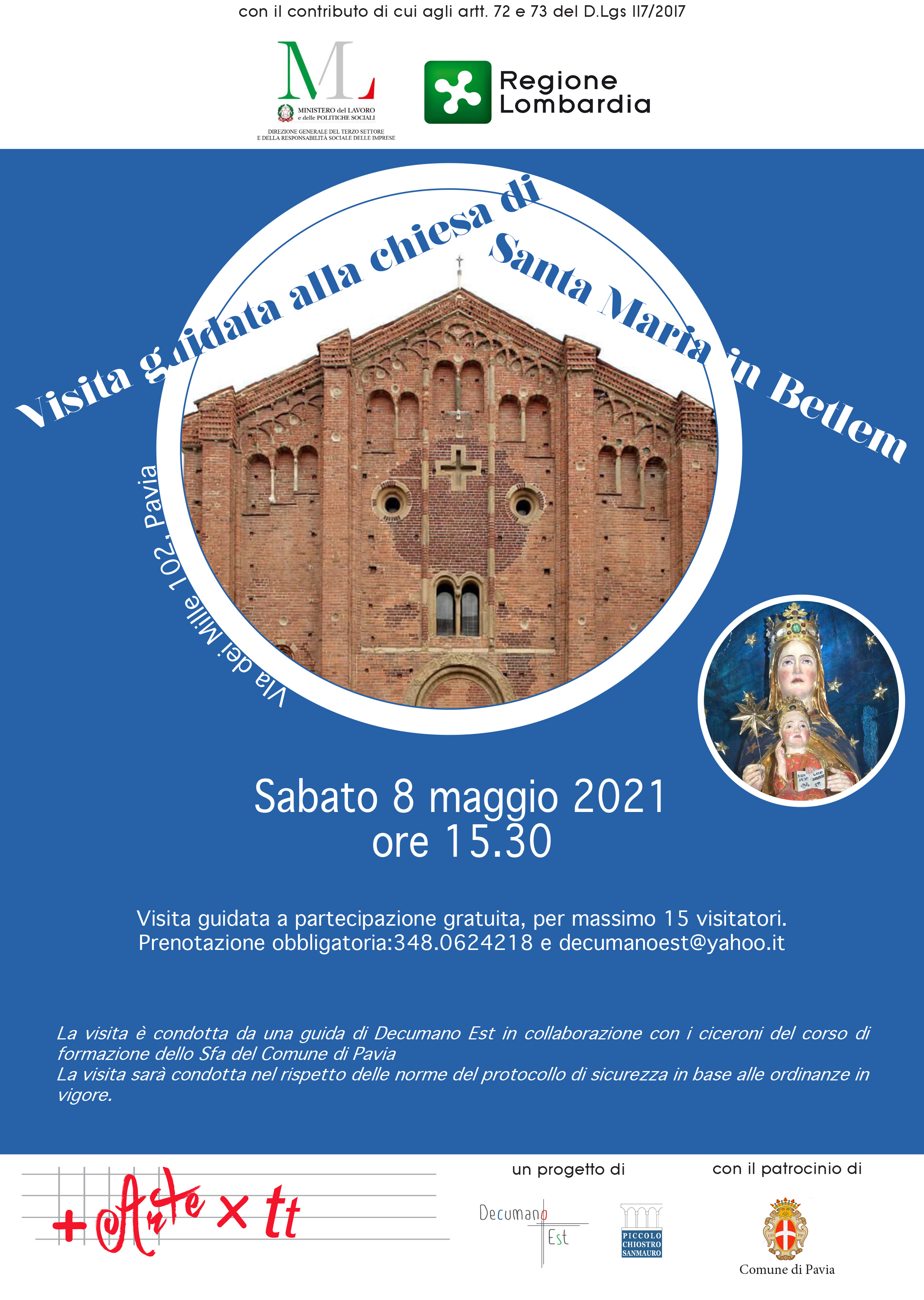 Sabato 8 maggio alle 15:30, visita guidata alla chiesa di Santa Maria in Betlem in Borgo Ticino, via dei Mille 120 a Pavia.