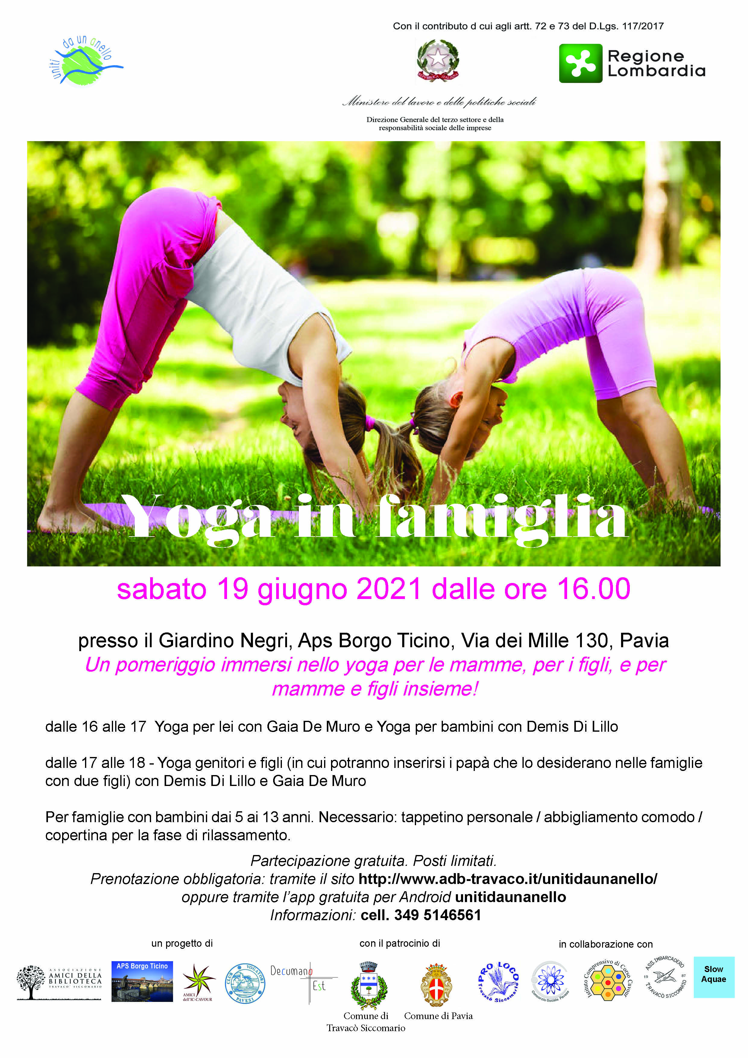 Dalle 16 alle 17 Yoga per le mamme con Gaia De Muro e yoga per bambini (tra i 5 e i 13 anni) con Demis Di Lillo