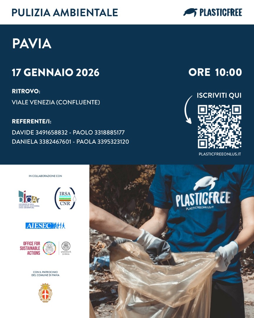 Plastic free cerca volontari per pulizia ambientale [PAVIA, SABATO 17 GENNAIO]
