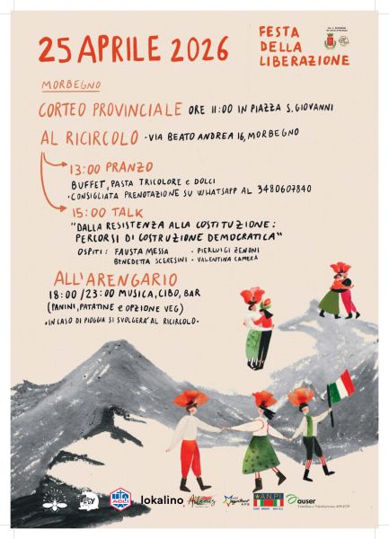 Sabato 25 aprile 2026 Morbegno ospiterà la Festa Provinciale della Liberazione, una giornata pubblica aperta a tutta la cittadinanza per celebrare l’81° anniversario del 25 aprile attraverso momenti istituzionali, riflessione storica, partecipazione civica, socialità e musica.
