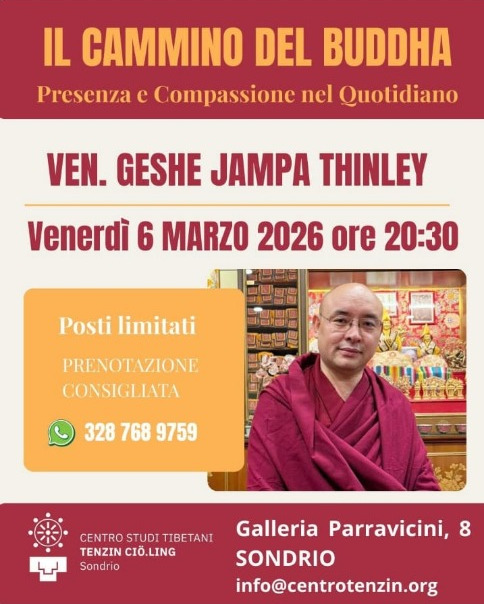 Insegnamento/conferenza sul tema "IL CAMMINO DEL BUDDHA - Presenza e Compassione nel Quotidiano", aperto a tutti, di Geshe Jampa Thinley