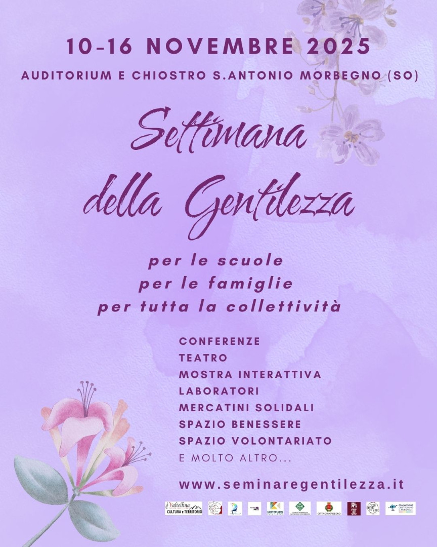 “Grazie al contributo della Comunità Montana di Morbegno verrà realizzato e distribuito alle scuole un libretto che raccoglierà i momenti più significativi dell’iniziativa e una selezione di buone pratiche gentili, con l’obiettivo di consolidare nel tempo l’efficacia educativa del progetto" - informa Luca Villa - consigliere di èValtellina cultura e territorio (associazione capofila della Settimana della Gentilezza).