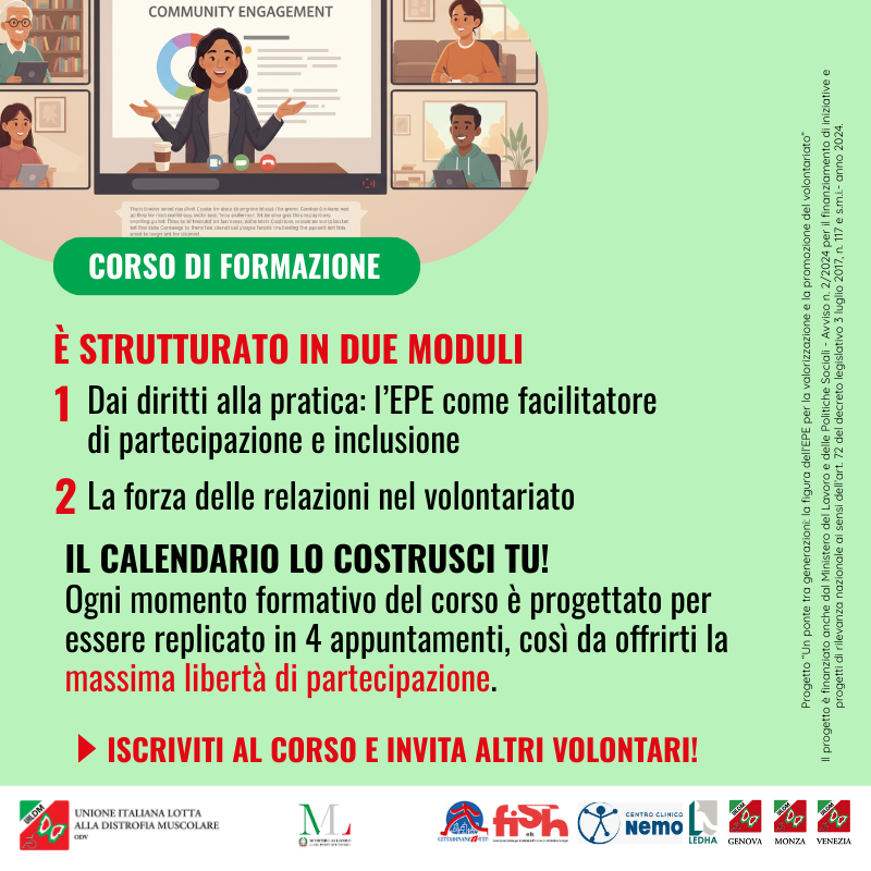 Progetto di rete organizzato da Unione Italiana Lotta alla Distrofia Muscolare Odv con Fish, Ledha, Centro clinico Nemo, Cittadinanza attiva e le sezioni Uildm di Monza, Genova e Venezia