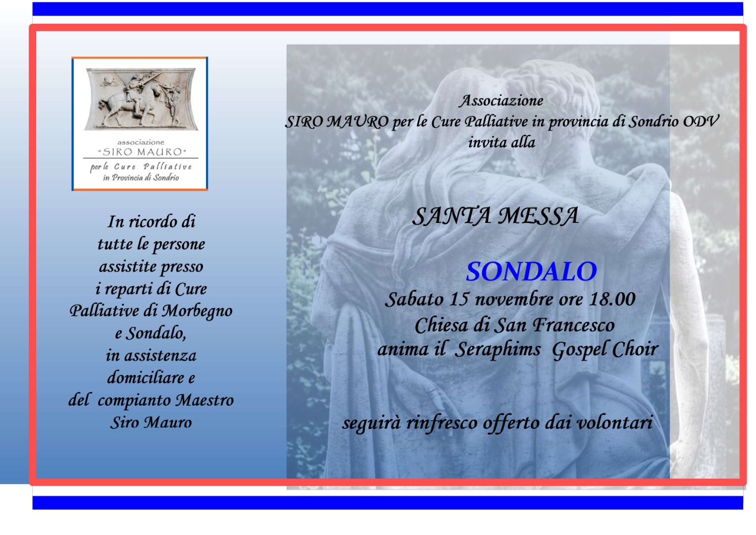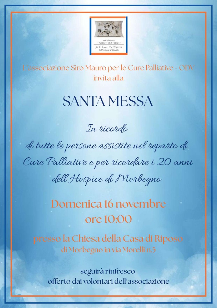 Invito alle S. Messe a Sondalo e Morbegno in ricordo di tutte le persone assistite presso i reparti di Cure Palliative di Sondalo e Morbegno e a domicilio e del Maestro Siro Mauro.