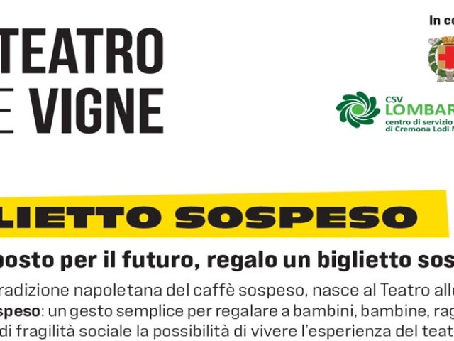 Durante la Giornata del Volontariato svoltasi lo scorso 21 settembre, è stato presentato il progetto “Biglietto Sospeso”: un posto a teatro per costruire Comunità, che nasce dalla collaborazione tra CSV Lombardia Sud ETS, il Teatro alle Vigne e il Comune di Lodi. Il biglietto sospeso...