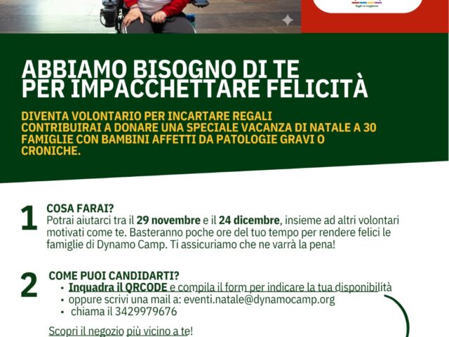 Cercasi volontari per “Pacchetti di Felicità”: unisciti a Dynamo Camp e Città del Sole per donare sorrisi questo Natale