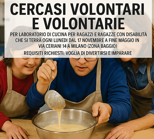 Laboratorio di cucina per ragazzi e ragazze con disabilità ogni lunedì dalle 16.30 alle 18.30