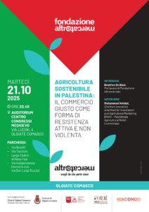 Martedì 21 ottobre 2025, alle ore 20.45, presso l’Auditorium Centro Congressi Medioevo di Olgiate Comasco (via Lucini, 4), si terrà un incontro pubblico dedicato al tema “Agricoltura sostenibile in Palestina: il commercio giusto come forma di resistenza attiva e non violenta”.