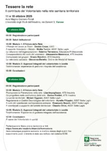 Con questa consapevolezza, ATS Insubria, in collaborazione con le tre ASST del territorio insubrico, ha avviato un ciclo gratuito di incontri formativi dal titolo “Tessere la Rete: il contributo del volontariato nella rete sanitaria territoriale”.